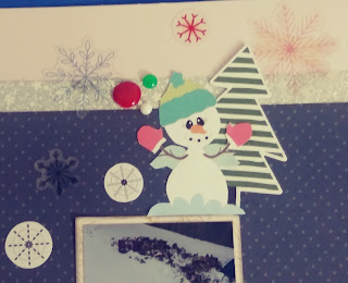 | Snowman is from Silhouette. Tree die cut is from Hip Kit Club Make a Wish exclusive die cuts. Enamel dots are from my stash. |